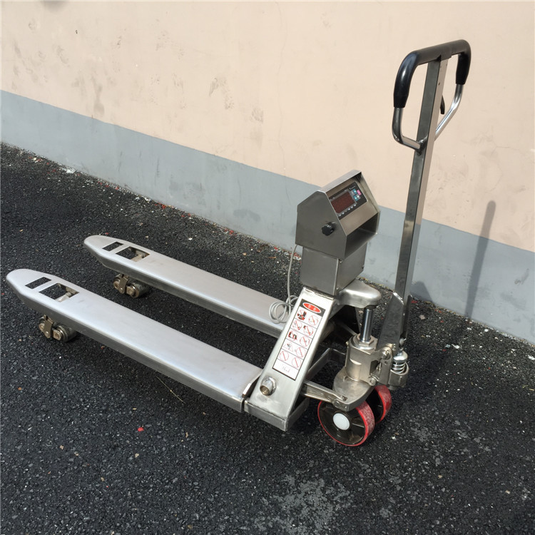 不銹鋼叉車秤簡(jiǎn)介:1、叉車秤是指在小型手動(dòng)液壓升降搬運(yùn)車基礎(chǔ)上增加高精度稱重傳感器和智能化數(shù)字顯示儀表而組成的稱重系統(tǒng),電子叉車秤是一款集貨物搬運(yùn),具備一般托盤搬運(yùn) 車的全部功能,適用任何大小物體的搬運(yùn)、計(jì)量稱重功能為一體的液壓搬運(yùn)車秤,每次稱重的數(shù)據(jù)可以自動(dòng)顯示,電子叉車秤獨(dú)特設(shè)計(jì)的力學(xué)結(jié)構(gòu)具有防過載、偏 載、傾覆的特性,最小的離地間隙(80mm),用戶可以如同普通叉車一樣正常使用。